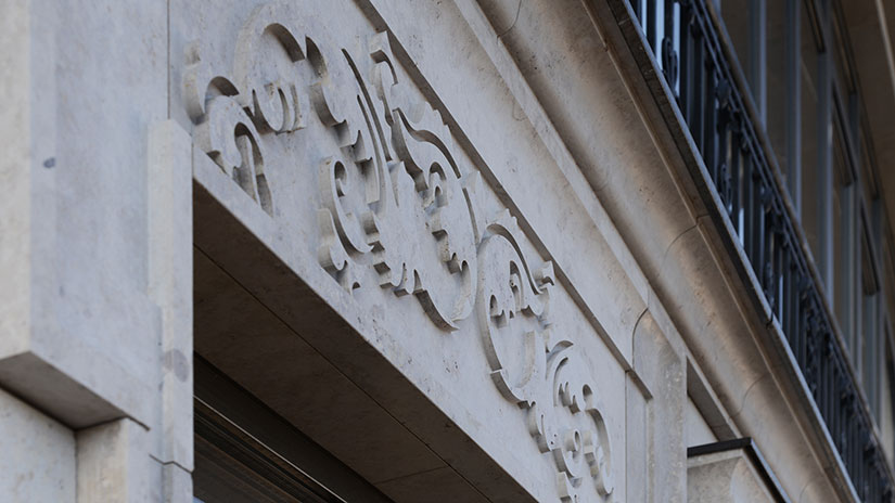 Главный фасад здания выходит на Большой Козихинский переулок. Сдержанный и интеллигентный образ дома лишен сложных и перегружающих элементов декора, что создает ровную и легкую по ощущению картину дома. Основным украшением фасада стали французские балконы: их точеные кованые перила добавляют изящества, а широкие окна максимально наполняют квартиры воздухом и светом.