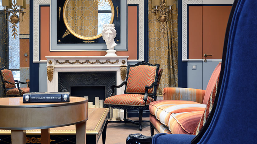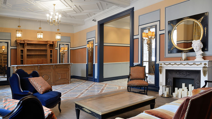 - Лобби с каминным залом и библиотекой
